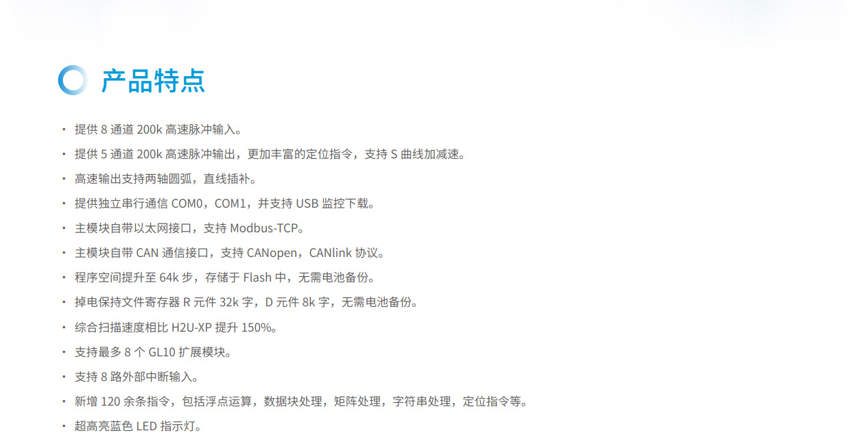 H3U系列PLC是匯川技術開發的第三代高性能小型PLC,采用新一代獨具匠心的PLC 架構技術,在增加更多豐富功能的情況下持續提升性能。配合完整且嚴格的軟件測試過程,使得PLC 穩定可靠,值得信賴。